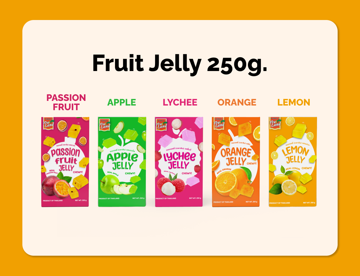 Dive into the essence of Thailand with our Thai fruit jelly desserts, a delightful showcase of the country's fruit bounty. Each jelly is a testament to the freshness and juiciness of Thai fruits, offering a taste that's as close to eating the real thing as possible. These jellies capture the quintessential refreshing and vibrant flavors, enveloped in a smooth, gelatinous texture that enhances the natural sweetness. Perfect for anyone seeking a light, revitalizing dessert