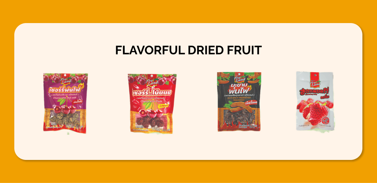 Experience our high-quality dried and processed fruits in a variety of delicious options! From mangoes, tamarind, and durian to strawberry, orange, coconut, passion fruit, and more taste the best of our fruit selection in every bite!