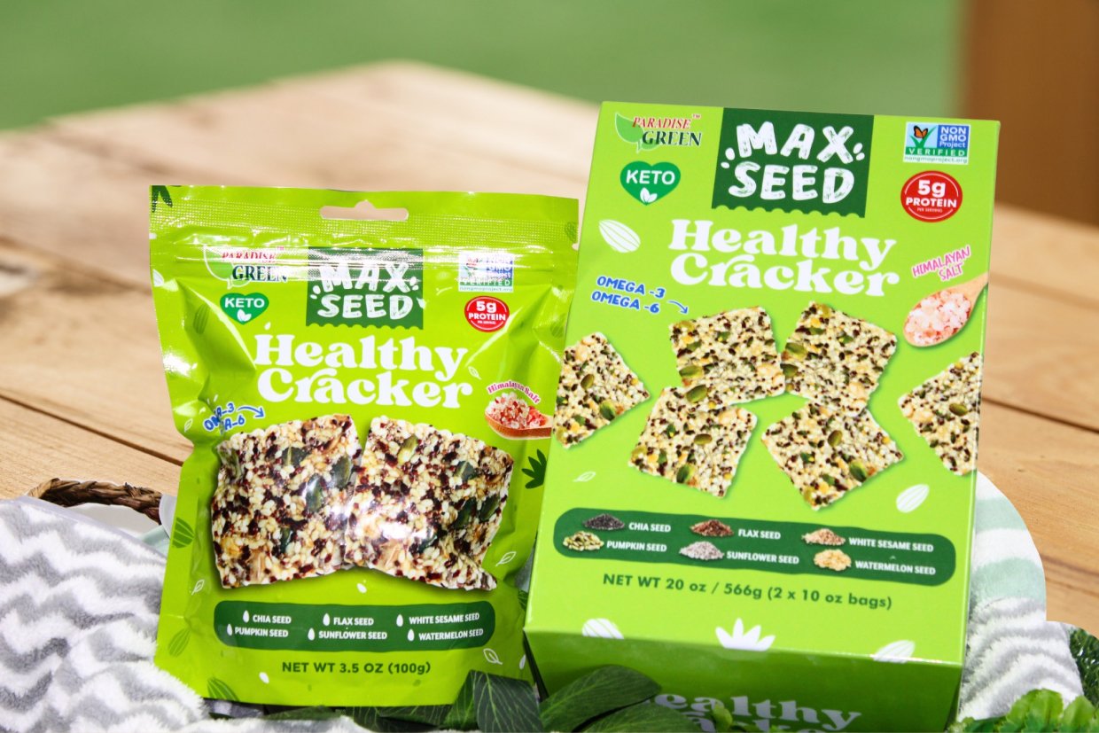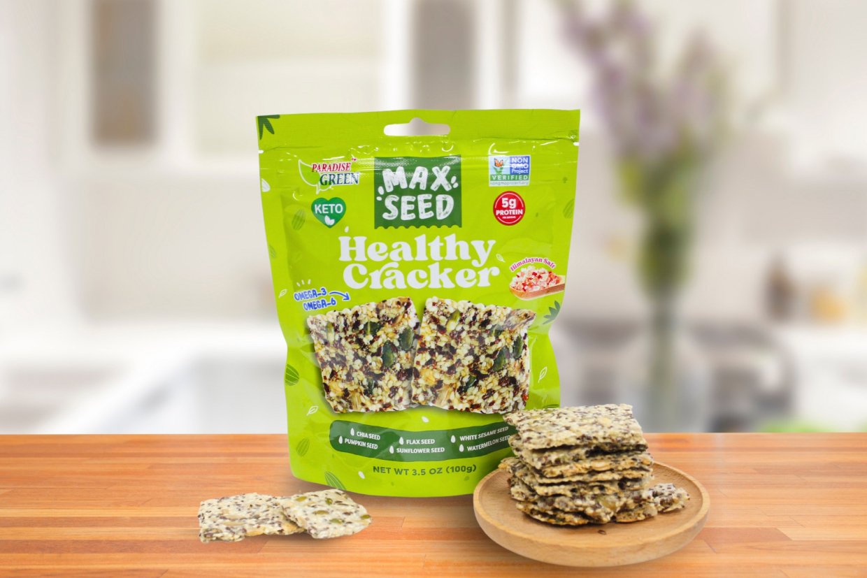 A nutritious way of snacking by blending arrowroot flour with nature's finest seeds and olive oil to provide antioxidants and "healthy heart" Omega-3 and Omega-6 fatty acids. Max Seed crackers are not only deliciously crunchy but they're Gluten Free, NON-GMO, Vegan, Keto and high in protein.